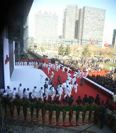 在現(xiàn)場可以看到,一個巨大的幕布從大廈西側(cè)的頂樓垂下,上面印著百度數(shù)千名員工照片組成的笑臉,使過往的行人都感受到慶典儀式的喜慶氛圍。儀式上,300名百度員工及百度愛好者們共同出演“百人秀”,通過跑動在大廈前的廣場上排出一個個活潑生動的慶典圖案,更將整個活動的氣氛推向高潮。最后,李彥宏和員工及網(wǎng)友代表一起,在大廈前種下一棵象征基業(yè)長青的雪松,培上百度各地網(wǎng)友取來的五岳之土,并以長江、黃河之水澆灌。