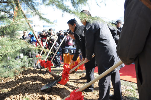 今天我們最親愛的網(wǎng)友們?yōu)榱吮磉_他們對百度的祝福,不遠千里送來了代表神州大地五岳之土和長江、黃河之水。山東網(wǎng)友前往泰山取土,送來東岳之土;陜西網(wǎng)友前往華山取土,送來西岳之土;湖南網(wǎng)友前往衡山取土,送來南岳之土;山西網(wǎng)友前往橫山取土,取來北岳之土;河南網(wǎng)友前往嵩山取土,取來南岳之土;網(wǎng)友前往南京長江大橋,送來長江之水;山西網(wǎng)友前往黃河虎口瀑布取來黃河之水。下面讓我們掌聲有請北京市委常委、海淀區(qū)位書記趙鳳桐先生;山西省省委常委、統(tǒng)戰(zhàn)部部長李政文先生;山西省政協(xié)副主席衛(wèi)小春先生;我們的董事長兼首席運營官、執(zhí)行官李彥宏先生;首席財務(wù)官杰尼;技術(shù)首席執(zhí)行官李一男;副總裁任旭陽一起前往植樹區(qū)進行植樹環(huán)節(jié)。有請。