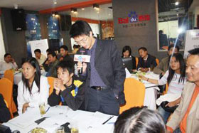 秋高氣爽,舒適宜人。2008年10月24號(hào)下午,“營(yíng)銷(xiāo)加速度”——百度營(yíng)銷(xiāo)專(zhuān)家培訓(xùn)會(huì),在美麗的丹頂鶴之鄉(xiāng)鹽城拉開(kāi)了帷幕。在思科百度商務(wù)會(huì)所里,客戶們齊聚一堂,氣氛甚是融洽。本次會(huì)議真可謂陣容強(qiáng)大,百度客服部經(jīng)理張鵬先生與百度渠道部經(jīng)理晟皞先生兩大經(jīng)理齊上陣,再加上思科資深網(wǎng)絡(luò)營(yíng)銷(xiāo)專(zhuān)家、客服部經(jīng)理盧全女士精彩而實(shí)用的演講,現(xiàn)場(chǎng)客戶個(gè)個(gè)大飽耳福,獲益非淺。會(huì)議開(kāi)場(chǎng)主持人帶領(lǐng)大家玩默契火拼游戲,破冰熱場(chǎng),大家玩得不亦樂(lè)呼!短暫的游戲后,與會(huì)嘉賓都專(zhuān)心致志的聽(tīng)著張鵬經(jīng)理、盧全經(jīng)理精彩的演講。在有獎(jiǎng)問(wèn)答環(huán)節(jié),客戶們更是奮勇?lián)尨?,把整個(gè)會(huì)議推向了高潮。