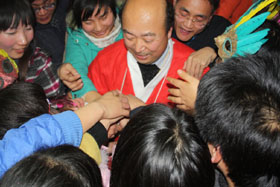 大家開(kāi)心地?fù)屖フQ禮物
