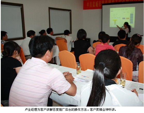 6月25日14:30,“新媒體 精準(zhǔn)互動(dòng)新營銷——百度推廣客戶交流會(huì)”在公司會(huì)議室隆重舉行。此次會(huì)議通過兩位客服經(jīng)理的主題演講,向與會(huì)25家客戶灌輸全面的百度推廣功能和正確的系統(tǒng)操作辦法,助力客戶利用百度推廣平臺(tái)贏得更多、更好的商機(jī)。