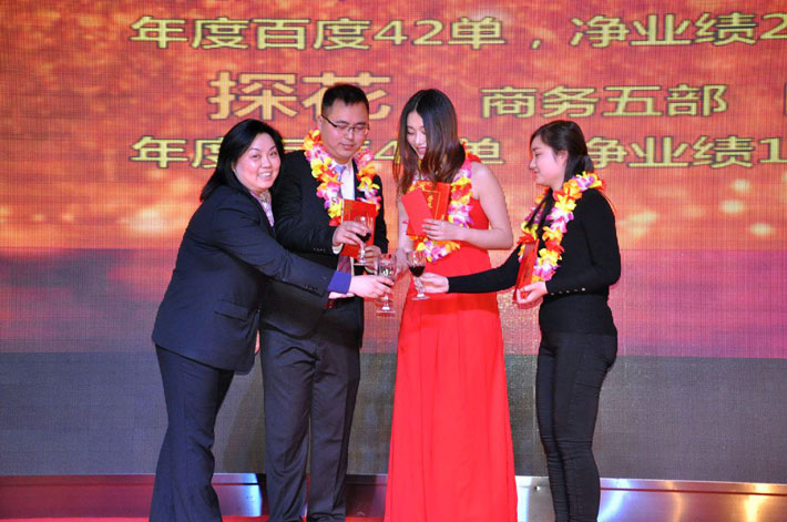 段總與年度優(yōu)秀經(jīng)理舉杯慶祝