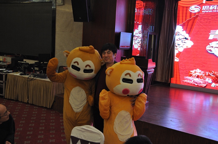 下半場(chǎng)年會(huì)開(kāi)始了,主持人旁邊站得是誰(shuí)?就是我們鹽城思科的吉祥物思思與科科,這是我們第一次亮相,好可愛(ài)~